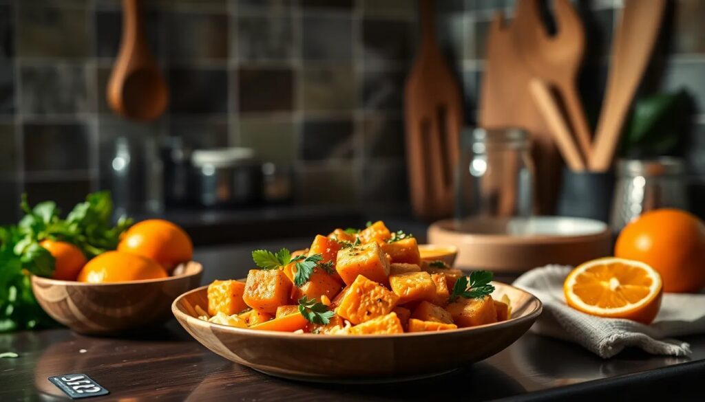 Receta vegana de tortilla de patata y calabacínPara comenzar, asegúrate de tener el tofu firme bien escurrido y cortado en cubos. Luego, el zumo de naranja se mezclará con otros ingredientes para crear una salsa deliciosa que hará que tu tofu brille como la estrella del plato.